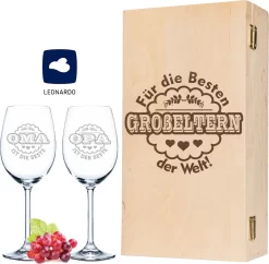 Leonardo Weingläser Oma Ist Die Beste & Opa Ist Der Beste Im 2er Set – Inkl. Gravierter Vintage-Holzkiste – Geschenk Für Oma & Opa – Geburtstag Großeltern